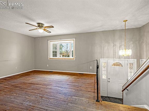Welcome to this beautifully maintained bi-level home in the desirable Widefield Country Club Estates community. Offering 3 bedrooms and 2 bathrooms, this home blends classic charm with modern updates in kitchen. The main level features gleaming hardwood floors and an inviting living room area — perfect for entertaining or relaxing at home. The updated kitchen showcases sleek quartz countertops, ample cabinetry, and vinyl windows that fill the space with natural light. Downstairs, the lower level provides additional living space ideal for a family room, home office, or guest area, complete with a second bathroom for convenience. Step outside to a private backyard offering plenty of room for gardening, play, or summer gatherings. This home has been lovingly cared for and it shows. Conveniently located near schools, parks, shopping, and Fort Carson, this property combines comfort, functionality, and location in one great package. Don’t miss your chance to own this home — schedule your showing today!