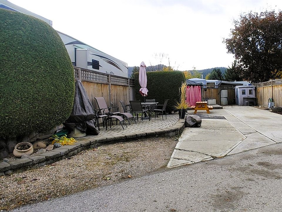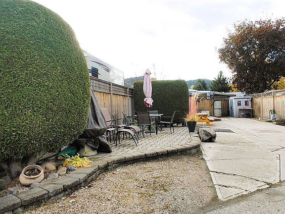 Welcome to Holiday Park Resort! Check out this Spacious Lot and bring your RV to start living the Okanagan Dream. The beautiful lot has a raised stone patio, gazebo, shed and wood fence on 3 sides. Situated close to the main recreation facility with an outdoor pool and hot tub. This gated community is loaded with the following amenities; pools, hot tubs, laundry facilities, pickleball courts, golf course, gym, craft room, woodworking shop, library, sandy beach, activities for kids and more. Check out the new THYME at Ellison Lake Restaurant and the new Up Front Market & Rentals. A fully serviced convenience store that also rents golf carts, bicycles, pedal go-carts, kayaks, canoes, paddleboards & pedal boats. 3 Pets allowed. Standard Lot, 1991 sqft. Lease term to March 2046. Yearly Maintenance Fee is $4,677, no pad rent. Okay to drive by but please do not disturb owners. The information contained here in should not be relied upon without independent verification.