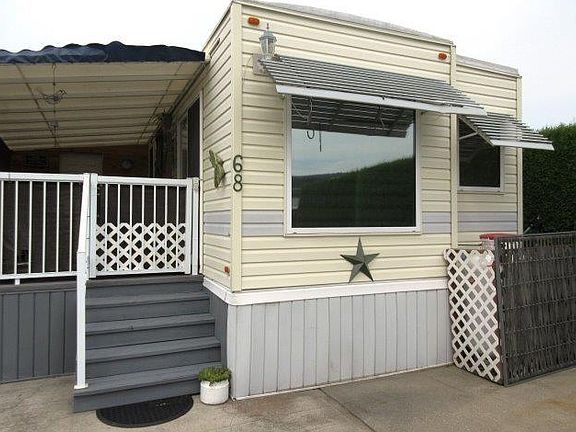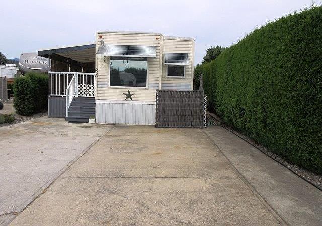 Move in Ready! Great location in the gated community of Holiday Park Resort, this cute 1 bedroom Park Model is bright and cheery. The large covered deck is ideal for your BBQ and outdoor entertaining. The phantom screen allows the fresh air inside but keeps the bugs outside. The hot water and tank and AC was replaced in 2021. The lap pool is a short walk away where you can enjoy a friendly game of water volleyball. The Family Activity Centre is close by where you will find the restaurant, pool, hot tub, children's playground, shuffleboard and coin laundry. Enjoy all the amenities that are available to you - pools, hot tubs, games room, gym, golf course, pickleball court, library plus more. Lease term to 2046. This is registered with the Federal Government. The Annual Maintenance Fee is payable in January of each year. For 2025 the maintenance fee is $5458 which includes water, sewer, security, use of the amenities, maintenance of the common areas and roads, snow removal and garbage disposal area. There is no Property Transfer Tax. Long and short term rentals are allowed. Close proximity to Kelowna International Airport, wineries, golf courses, Rail Trail, shopping and entertainment. Measurements are approximate.