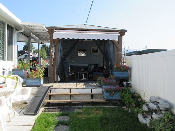 Open concept Modulux Park Model Unit in a great location! Entertain friends and family in the spacious kitchen featuring an island and lots of storage. Larger than normal dining room allows for a full size dining table to take center stage. Lots of windows in the living room allow for the natural lighting to flow in. The electric fireplace adds warmth on a chilly evening as you watch a movie. The two parking spots that will accommodate a larger vehicle. The gazebo on the deck is a great place to relax. Walk down the stairs to your private fenced in yard that your fur baby will love. Woodlands Adult Rec Centre is across the street where you will find the library, games room, billiards, hot tub, seasonal pool and the pickleball court. Lease term to 2046. The lease is registered with the Federal Government. The Annual Maintenance Fee for 2025 is $5458, includes security 24-7, water, sewer, use of the amenities, maintenance of the roads and common areas, snow removal and garbage disposal area. Property Taxes are payable to the City of Kelowna. There is no Property Transfer Tax. Long and short term rentals allowed. Enjoy all the amenities in Holiday Park Resort - pools, hot tubs, golf course, gym, hair salon, lots of social events, woodworking shop plus more. Close proximity to the Rail Trail, Kelowna International Airport, wineries, golf courses, ski hills, shopping and entertainment.