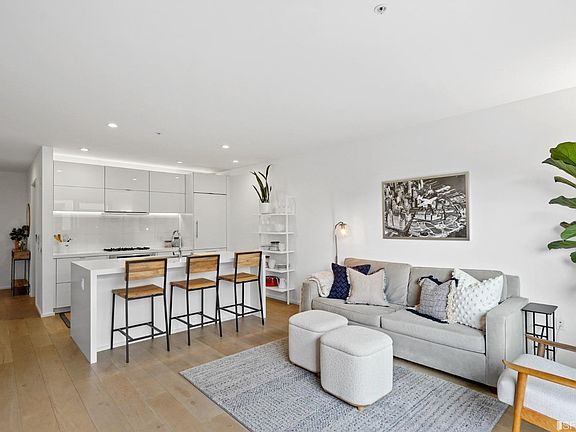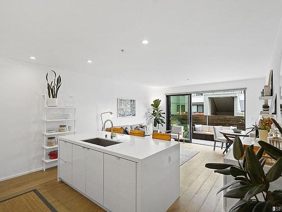 This upscale 2 bed, 2 bath home embodies the best of indoor/outdoor living, complete with luxurious and modern finishes throughout. Enjoy the chef's kitchen with a sleek eat-in island, professional grade appliances, and opening directly to the light and bright living and dining great room. Floor to ceiling sliding doors open to an extra-large deeded patio with a sunny deck, and multiple seating and dining areas - the epitome of modern living. Retreat to two beautiful bedrooms and two luxurious bathrooms, one en-suite, with spa-like finishes throughout. Wide plank European rustic oak floors with radiant heat, in-unit washer & dryer, a second private patio, garage parking & storage complete this stunning home. Situated in The Onyx - a 20-unit boutique building built in 2014, and located in Potrero Hill's hot Design District. Steps to Whole Foods, Philz Coffee, dining, nightlife, and easy access to freeways, CalTrain and shuttle services. Welcome home!