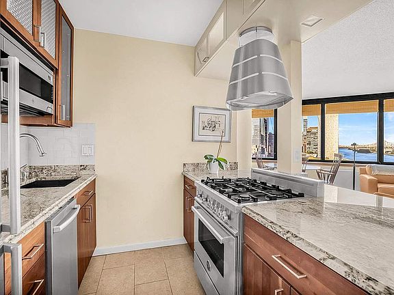 Spectacular East River and City views from this spacious mint condition 2 Bedroom, 2 bath apartment with a washer and dryer. The gut renovated kitchen is open to the living room and has top of the line appliances and granite counter tops. One of the two marble baths is ensuite to the large primary bedroom. The apartment has hard wood doors throughout and very generous closet space.