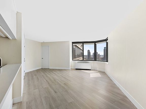 “Resort-style luxury living high above the city: South-facing 1 Bed + Den with 2 full baths, East River views, newly renovated kitchen, in-unit W/D, and Horizon’s world-class rooftop pool, spa, and fitness amenities.”