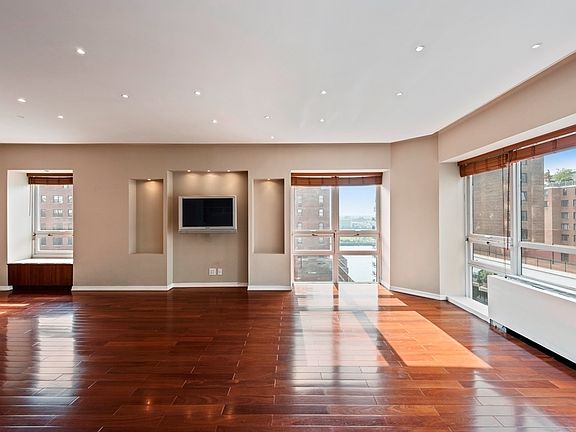 Gorgeous Flex 4 Bedrooms, 3 Bathrooms, approximately 1,900 Square Ft Apartment located in the very desirable Sutton Place area. Gut renovated. All new bathrooms imported from Italy. Porcelain tiles. Toto Toilets. Grohe showers. Brazilian Teak hardwood floors throughout. All closets are Custom-made with built-in organizers. Custom-made, state of the art kitchen, featuring Wenge cabinets, Silestone counter-top and mosaic backsplash, sub-zero refrigerator, Wolf range, Electrolux microwave/convection oven, GE Profile dishwasher, and Franke Sink. Open floor plan kitchen with counter space to seat 5. Living room features view to the east river. Partial river view from master bedroom as well. Windows are floor to ceiling throughout, providing an abundance of light. Custom-made, 9 foot ceilings with spot lights and rope lights, creating a look straight out of Architectural Digest. Master suite, which is situated separately from the other two bedrooms- providing lots of privacy and featuring two huge closets, one of which is a walk-in. Master bath features a Toto washlet toilet, a rain and handheld shower, double sinks, and a linen closet. Second bedroom features an en-suite bathroom. Third bedroom features a neighboring full bathroom. Separate laundry area featuring a Miele washer and dryer with plenty of storage space for all household needs. This is a truly unique opportunity to live in a home custom-designed for a family. All the bedrooms are very spacious with tons of closet space. This is a luxury full service doorman building with a gym and roof deck.
