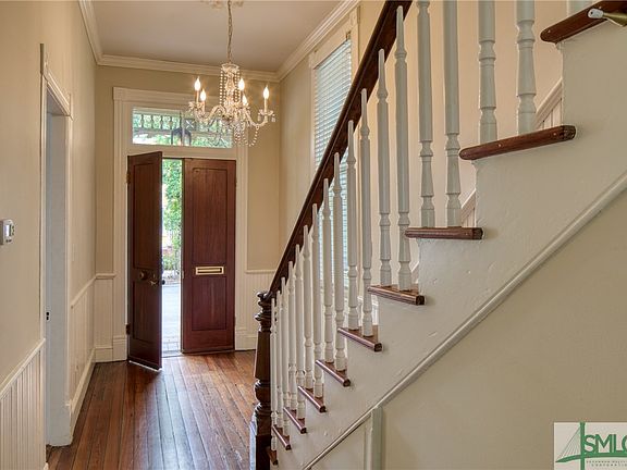 Historic District! Exquisite 3Bdrm/1.5Bath. Steps to Forsyth Park, Liberty St, Cafes & Shops. Inside, Original Hardwood Flrs, Soaring Ceilings & Windows allow an abundance of natural light. 4 Fireplaces. Detailed Millwork throughout. Main level Elegant Living/Parlor Rm w/Grand Fireplace & Bay Windows overlooking Picturesque streetscape. Formal Dining Rm w/Fireplace and Custom Built-in Cabinets. Powder Rm/HalfBath. Renovated Eat-in Kitchen with Wood Cabinets, Stainless Appliances & Pantry. Upstairs, Sun-drenched Primary Bedroom w/Bay Windows & Fireplace. Two additional Bedrooms ideal as Guest Bdrms and/or Home office. Full Bath and W/D. Front Porch, covered back Deck w/Retractable Awning and Private fenced Courtyard offer perfect areas for Outdoor Dining & Entertaining.Off street Parking for 2–3 cars. Room to build Carriage-house and/or Garage. Move in Ready. End unit. No HOA.