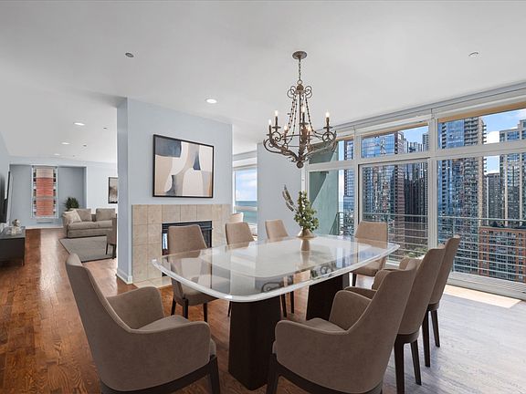 Experience unparalleled luxury living at 415 E North Water Street, nestled in Chicago's vibrant Streeterville neighborhood. This exquisite home offers a spacious 3-bedroom, 3.1-bathroom layout, with 9.5 ft ceilings and nearly 4000 square feet of meticulously designed living space. The primary suite spans nearly 1000 sq ft and has a large walk in closet, motorized shades and a spa-inspired bath. A separate wing (with its own exit door) has 2 more bedrooms, 2 bathrooms and a family room which could be easily converted to a 4th bedroom. Enjoy panoramic views of the Chicago River and city skyline through expansive floor-to-ceiling windows and from two private balconies. The chef-inspired custom kitchen has top-of-the-line appliances & granite countertops that flow into the open-concept living and dining areas. Includes two deeded parking spaces on the first floor of the garage, one space is oversized/handicap accessible and the 2nd is EV charging capable. The building offers friendly 24-door staff, onsite manager and maintenance team. The 6th floor has a fitness center, indoor lap pool, locker rooms with saunas and a large south facing community sundeck. Located along the Chicago River, this residence offers a serene retreat while being just steps away from Mariano's, Target, Whole Foods, Northwestern Medical Campus, dining and shopping. The building is very pet friendly and has an adjacent dog run. Over $4M in building reserve account.