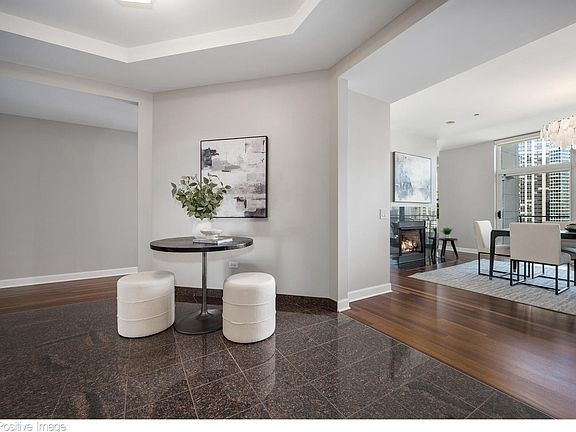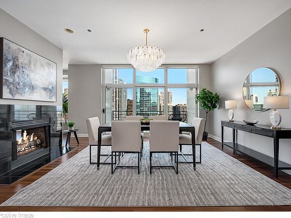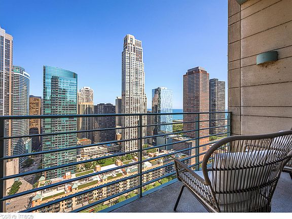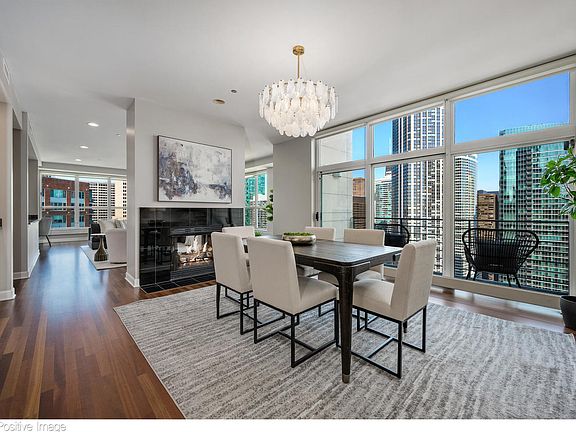 Enjoy breathtaking views from this 3,500 sq ft, 4 bedroom, 3.1 bath penthouse residence at RiverView. This gorgeous corner unit stuns with floor-to-ceiling windows capturing north, east, and west exposures of the skyline, river, and lake. Hardwood flooring flows seamlessly through an expansive, open floor plan. A large formal entryway with ample wall space for an art collection welcomes you home. Formal living and dining rooms are separated by a two-sided fireplace. A generously sized living room enjoys stunning corner views, while the dining room offers a convenient wet bar with a wine fridge and granite counter. Off the main living space, step onto the first of two balconies, where you'll take in striking views of the river, lake, city, and the iconic Navy Pier. A second west-facing balcony frames additional river and skyline views while offering spectacular sunsets. The living room also opens to the chef's kitchen, making this the perfect place to entertain on a large scale. The kitchen features an extra-large island that easily doubles as a buffet, ample counter space, 42" cabinets, Sub-Zero and Thermador appliances, and a breakfast nook. The 4th bedroom is currently set up as a family room/den, the perfect retreat for a study, movie night, or home office. A massive primary suite occupies its own "wing" of the residence with a graciously sized bedroom, a California Closets custom designed walk-in closet, and an ensuite bath with Whirlpool tub, oversized separate shower, and dual vanity. On the other side of the residence, the second bedroom has an ensuite bath and a custom walk-in closet designed by California Closets. A large third bedroom with a generous closet is conveniently located across the hall from a third full bath with tub/shower. A powder room and laundry room complete the layout. Two deeded parking spaces are available for purchase for $50K/space. RiverView is a full-service, amenity-rich building offering 24 hour door staff, an exercise room, indoor pool and spa and sundeck. 415 E North Water sits along the riverfront with quick access to the Riverwalk, lakefront path, restaurants, shopping, museums, nightlife, and all that Streeterville has to offer!