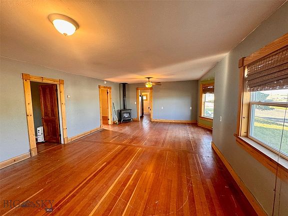 This lovely 2 bedroom 1 bathroom home is on the edge of town in Wilsall. Sitting on 4 city lots for a total of 12,000 square feet, you will appreciate the privacy and room to garden while enjoying this authentic Montana community. Beuatiful hardwood floors and high ceilings add to the charm of this historic home. Picture windows look out onto the Crazy Mountains and you'll love the covered porch off the back. The sun room off the kitchen is cozy and bright. The wood stove and propane stove in the living room will keep you warm and cozy in the winter. The yard is fenced and the property is adjacent to acres of ranch land for an added feel of privacy.