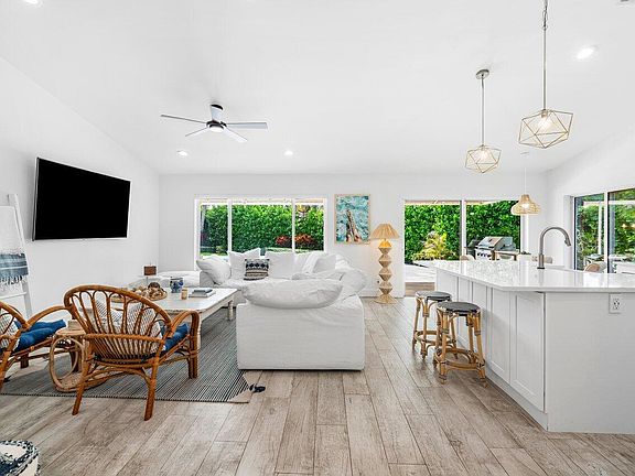 Welcome to your coastal retreat at 415 Enfield Rd.! Replete with swaying palms, pineapple motifs & endless pool days, this 4 bed, 2.1 ba home is the perfect blend of sunshine & style. With a BRAND NEW ROOF (2025), this renovated & freshly painted gem sits on nearly 1/3 acres in sought-after Lake Ida Manor. Vaulted ceilings greet, creating a bright, airy atmosphere that immediately feels welcoming. The cheery gourmet kitchen features a quartz island, wine cooler & cozy breakfast nook, ideal for casual meals or entertaining friends. The living room & primary bedroom seamlessly connect to the backyard, offering tranquil views of your private oasis. Enjoy the vibrant ''Village-by-the-Sea,'' with Pineapple Grove, Atlantic Avenue & beach just a short stroll, bike ride or golf cart ride away. An enchanting outdoor space features a newly-resurfaced & heated pool, summer kitchen complete w/brand-new grill & elegant new travertine pavers. Surrounded by lush, tropical landscaping, this private oasis is designed for relaxation & entertaining. The vibrant "Village-by-the-Sea" awaits just beyond your doorstep, w/Delray Beach's charming Pineapple Grove, lively Atlantic Avenue & the sun-kissed beach all just a short stroll, bike ride or quick golf cart jaunt away. Embrace the quintessential South Florida lifestyle in this one-of-a-kind home!