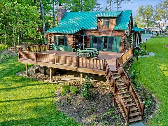 Discover the perfect mountain retreat at Hidden Valley Resort with this exceptional log cabin. Nestled amidst the breathtaking Forbes State Forest with direct access to scenic hiking trails leading to ski slopes, this one-of-a-kind cabin combines rustic charm and refined details with exposed log beams, cathedral ceiling, open loft and stone fireplaces. The meticulously maintained exterior has been corn cob blasted and restained, enhancing its natural beauty. The open kitchen features refinished cabinetry, granite tops and stainless steel appliances. The great room, with new flooring and a fresh design aesthetic, offers a cozy space to unwind by the fireplace. Two bedrooms on the main floor and an additional bedroom and loft upstairs. The finished basement is perfect for entertaining, complete with a second fireplace, family/game room, and ski locker room. The newly constructed 1,000-square-foot deck, new hot tub and fire pit are ideal for entertaining. Offered partially furnished.