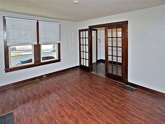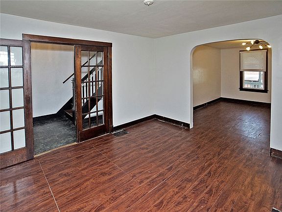 There's so much to like in this sweet home located on a quiet one-way street. French doors open from the formal entry hall to the spacious living room with decorative brick fireplace, vintage wall sconces, and plenty of natural daylight. The entertainment-sized dining room's arched doorway leads to an efficient kitchen with white cabinets and a corner sink. Both the covered front porch and rear deck invite you to relax and enjoy morning coffee or an afternoon picnic lunch. The huge basement provides for generous storage space and opens to the backyard shed. Freshly painted walls show off the dark hardwood accents and many new light fixtures and window blinds on both first and second floors. Also included are the washer, dryer, new humidifier, battery-operated lawn mower, three "as is" window air conditioners.
