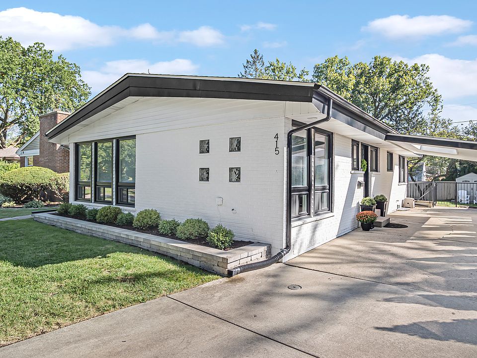 Located within East Glenview and the desirable New Trier School District, this home offers ranch living paired with modern luxury and bespoke touches. Wood beams and recessed lighting throughout the main level highlight the vaulted ceilings. The continuous walnut stained floors create a spacious, well connected living room, dining room and kitchen area. Renovated in 2020, the white kitchen cabinetry compliments the quartz counters, marble backsplash and KitchenAid stainless steel appliances. The eat-in kitchen space and countertop bar seating offers space for up to seven guests, making this home ideal for entertaining. The three main level bedrooms showcase hardwood floors, ample closet space, floor to ceiling draperies and matching ceiling fans. The fully finished basement, complete with a full bath, private 22x11 office or home gym and 24x23 living area nearly doubles the main level square footage. The renovated laundry and mechanical rooms offer practical storage and functional design. The rear deck, ideal for relaxing overlooks the lush, private backyard green space.