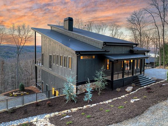 Lake View, Modern Marvel, Aska Adventure Area.. The definition of luxury mountain living. Framed by layered mountain and lake vistas, this extraordinary retreat pairs newly & professionally designed landscaping with resort-style amenities to create a true private sanctuary. Expansive walls of glass flood the home with natural light while showcasing the surrounding scenery. The thoughtfully designed open layout and soaring ceilings blend refined modern finishes with warm rustic character. Five private bedroom suites provide exceptional comfort for hosting large groups or enjoying everyday living with space for everyone. Perfectly positioned just minutes from Downtown Blue Ridge, Lake Blue Ridge, and the Toccoa River—and even closer to premier hiking and biking trails such as Flat Branch Loop—the location offers both convenience and adventure. Features include dramatic stone fireplaces, a chef's kitchen with oversized island and generous dining area, and a fully finished terrace-level lounge with bar and billiards space. Sliding glass doors lead to a slate patio complete with fire pit and the spa-like pool and hot tub overlooking the mountains. Offered turn key with tasteful furnishings & decor...and curated with meticulous attention to detail, this one-of-a-kind mountain lodge delivers an unmatched living experience in gated community. Comfortable full time living, much needed vacation getaway...or excellent short term rental potential...Schedule your private tour today and discover a new standard of mountain luxury.