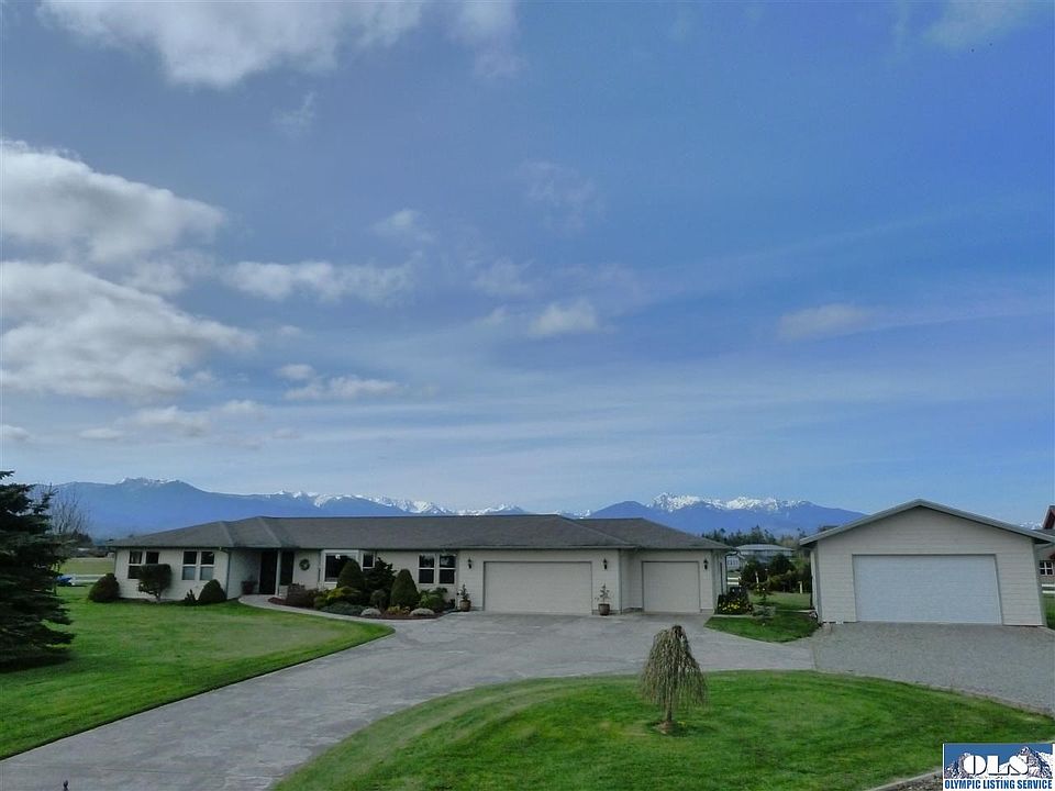 Stunning mountain and water views from this beautiful home in Blue Ribbon Farms. Everything you could want with 3 bedrooms, 3 bathrooms, living room, family room, dining room, large kitchen eating area, attached 3 car garage and detached 864 foot garage/shop. Beautiful, new hardwood floors, granite counter in kitchen with stainless steel appliances. Enjoy the ever changing mountain view or watch ships go by in the Strait and relax on this peaceful, landscaped acre.