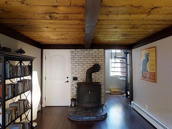 Exceptionally Unique Post and Beam Contemporary, set back from the street on 2 acres of manicured land, alongside a babbling brook and 3 unique patios!! Large wrap around 2nd floor deck looks out to the backyard! 2 Car garage and workshop underneath, 2 loft staircases. Open cathedral ceiling throughout the upstairs and stainless steel appliances in the kitchen and a unique island for eating. Built-in throughout the home, skylights, vinyl siding, and hardwoods, tastefully presented with new enhancements throughout make this an exceptional value for a young family or someone downsizing. New floors, new trim, new paint, new baseboards. WILL NOT LAST!