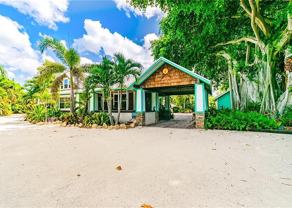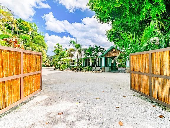 BELLEAIR BLUFFS ONE ACRE GATED ESTATE, known to the locals as "The Groves", is a unique, once in a lifetime opportunity, that simply can't be matched. Beyond the private gated entry you are greeted by a beautiful drive-thru portico, a manicured tropical jungle designed by a professional landscape artist, and the rare monstrously-large banyan tree that provides unfathomable raw beauty far above the clouds. This 1+ acre oasis is adorned with original brick walkways, three separate porches, tiki hut, private art studio, crushed shell beach, lime rock fire pit, lighted walking trails, and oversized detached garage complimented with a man-cave and ½ bath. Step inside this true historical survivor; from the original solid wood doors and intricate hardware, to detailed finish moldings and wood beams, the charm of old Florida matched with modern day amenities surrounds you throughout this great space. The kitchen's unique design and workmanship sets it several notches above your average open-concept layout. The use of Travertine tiles, Chambers commercial gas cooktop, Carrera marble backsplash, original concrete farmhouse sink, professionally hand-painted cabinets, and the over-powering presence of the hand-crafted, walk-in brick fireplace create a perfect gathering place for friends and family alike. Large picture windows line the open dining room that seems to draw you into your reinvented living room with built-in shelving intricately crafted from original reclaimed wood. The tastefully designed first-floor owners retreat is complete with private sitting area, original hardwood floors, wood accented ceilings, triple-head shower, clawfoot tub, private patio, and massive walk-in closet with cedar ceilings. A newly-revived upstairs includes two bedrooms, full bathroom, wet bar, office nook, and quiet reading area that allows one to delve into a good mystery novel -obviously set in the tropics. No HOA or deed restrictions here, bring your boats (1 mile to boat ramp), RVs, and toys! Best of all is the close proximity to, not only the great restaurants, fine shopping and grocery stores easily within walking distance, but the raw, contagious alluring Gulf of Mexico and its unforgettable sunsets only two miles away. Additional notable features include all metal roof, A/C UV light & air purifier system, spacious laundry room with built-in cabinetry, rich cedar siding and crushed shell stucco, deep water well for landscape watering and irrigation, over 200 palm trees, LED lighting throughout the entire home, dusk to dawn exterior/landscape lighting, and large storage shed. Paradise has been found; make your offer on this amazing property today!