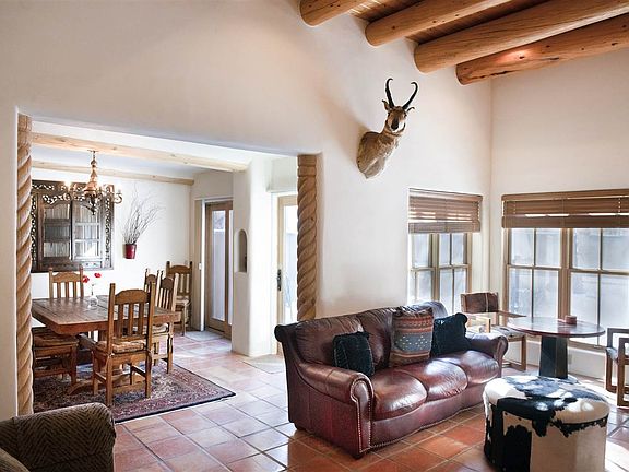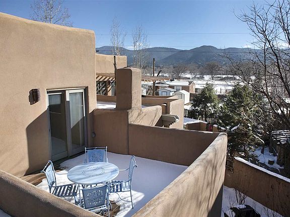 Pueblo de Los Suenos by any measure represents the best in Taos condominium developments.1,603 Sq. Ft. (based on interior dimensions), located mere 0.6 miles from the Plaza. Featuring 2 bedroom and 2.5 bathrooms, high ceilings, upstairs deck, high end kitchen and appliances, hot tub hidden by high courtyard walls. Beautifully landscaped grounds all around. An easy walk to town!