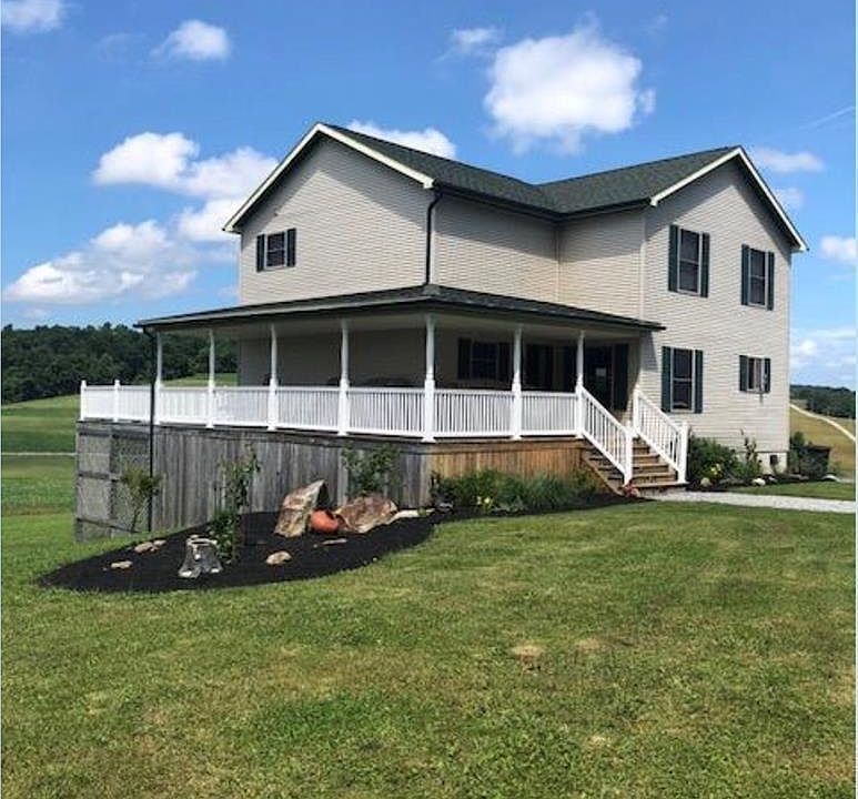 ACREAGE! ONE OF A KIND! This prestigious custom built home located on 17.3 acres,40 minutes from Altoona! Remarkable location with breathtaking views, this 4BR/2BA home is move in ready with many custom upgrades. Second story x-large master suite with 2 person jacuzzi and huge WIC! Main level boasts a beautiful KIT and LR with an open floor plan along with full BA and guest BR, all with access to the wrap around deck. Basement includes very large mudroom/laundry room, 2 BRs each with walkout access, area plumbed for a third BA and a large unfinished space great as a workout area! Cabin/shooting range in a private area for hunting/shooting/outdoorsman enthusiast. A must see!