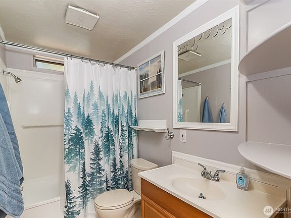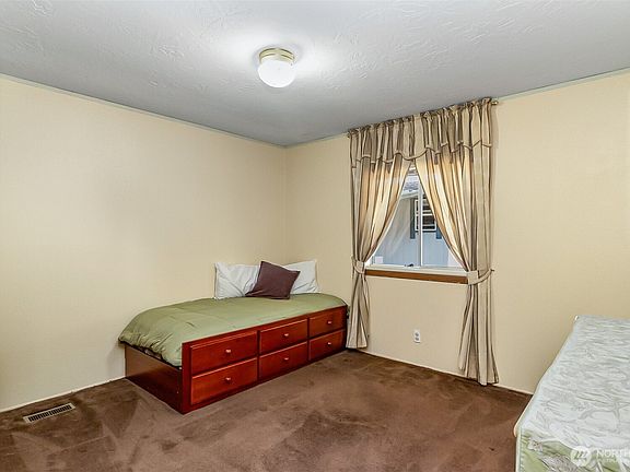 Extra large home in an all-age park. Nearly 1800 square feet with hard-to-find four bedrooms. Spacious bedrooms with an ensuite bath off primary bedroom. Enjoy a quiet small town feel while only being minutes from services, I-5 and I-405. Park amenities include clubhouse and ball field. Home backs on a green belt from Airport Park. Also near Martha Lake. Shed in back for extra storage. Welcome Home!
