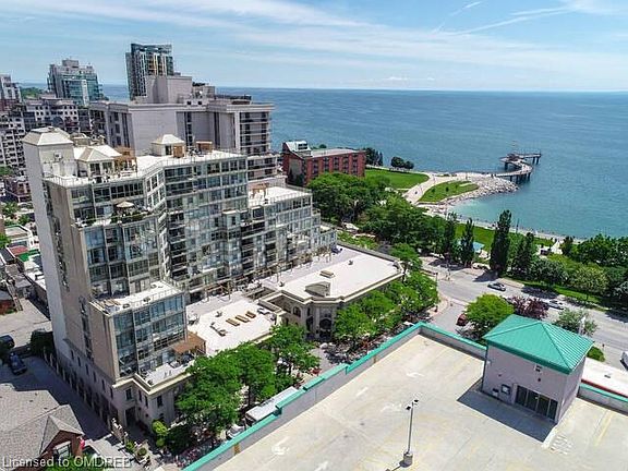 Lake views.! 415 Locust street in the heart of Downtown Burlington. The Harbourview Residences offers an open terrace with breathtaking views of Lake Ontario, Spencer Smith Park, the Sky way Bridge and the Niagara Escarpment. It also features a planned 15000 sqft. roof top garden area to enjoy. This Large 1 bedroom suite breathes sunlight through its wall to wall floor to ceiling windows w/ sliding doors, hardwood floors, newer kitchen w/stone counters, updated appliances, updated cabinetry w/ pantry. Relax in your bright and spacious Master Bedroom complete with walk-in closet and large En-suite bath. This boutique residence also offers a gymnasium, social room and a rooftop terrace with amazing lake views, along with your private underground parking and locker space. Your condo fees include all utilities. Walk outside your Harbourview gates and enjoy all the quaint downtown experiences, the beautiful pier, shops, the Performing Arts Centre, numerous events at Spencer Smith Park. City Parking garage across the street with free parking for all your visitors every evening, weekends and holidays. Down the street is easy access to the QEW, 403 and 407 along with the newly renovated Joseph Brant Hospital. Are you ready to live in the centre of everything downtown Burlington has to offer?