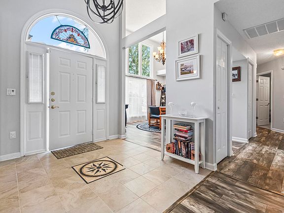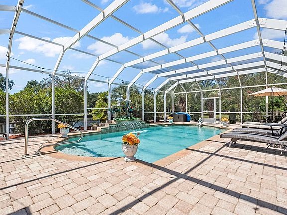 Lakefront, single-level home on .82 acres with your own private pool! As you enter, you'll find a formal dining room and office located on either side of the foyer, which opens to a spacious family room with vaulted ceilings. The kitchen boasts cherry raised panel cabinets, stainless steel appliances, granite counter tops and custom tile backsplash. You'll also have a generous eating area, breakfast bar, a built-in desk and easy access to your outdoor oasis. On the opposite side of the home are the additional bedrooms that offer plenty of closet storage space. Your master suite has a beautiful fireplace, tray ceiling and a large bathroom with double sinks, garden tub, and a shower that can also be used as a steam shower! Outside, you have the perfect space for fun and entertainment, with your own private screened-in pool and hot tub, putting green, firepit, bulkhead and dock. Home is very well-maintained and has a new roof from 2019. Just minutes to the beach,restaurants and shopping!