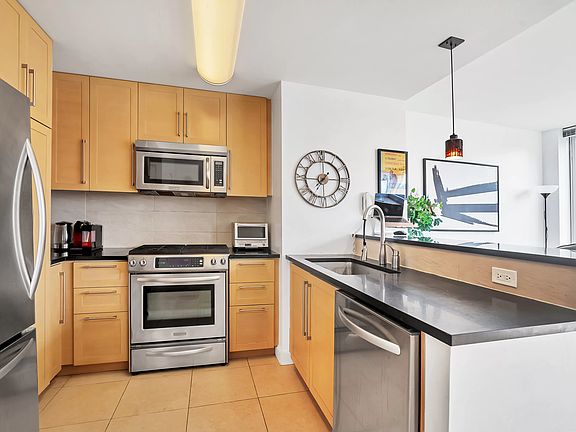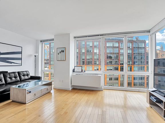 Welcome Home! This striking corner Junior 4 (Convertible Two Bedroom) One-and-a-Half Baths approximately 900 SF apartment with a panoramic open views of the Bridge, River and Manhattan skyline is featuring high-end finishes, floor-to-ceiling windows, Washer & Dryer and a generous use of space throughout. The open chef's kitchen features stainless steel appliances including a range, refrigerator, dishwasher, microwave and granite countertops. The bedroom is huge with the en-suite bath featuring marble throughout, a large closet and three additional closets. The powder room is marble with beautiful accent border tiling. Welcome to Riverwalk Court! Built and designed by Related the building is a full service luxury condominium offering a 24-hour Concierge and Doormen, a State-of-the-Art Fitness Center with Yoga Room, Playroom, Storage Room, Bike storage, an Exclusive Entertainment Lounge, and a Spectacular Rooftop Terrace with a 360-degree Manhattan and River Views. Riverwalk Court residents can enjoy the tremendous dining, shopping and entertainment venues the nearby blocks including the newly opened Anything At All, Granny Annie's Bar & Kitchen, Starbucks, Italian Trattoria, Sushi Restaurant, Wholesome Factory, Foodtown Supermarket and dry cleaners. The building is a few blocks from the new state-of-the art facility at Cornell Tech, Franklin D. Roosevelt Four Freedoms State Park, soccer and baseball fields, tennis courts, indoor and outdoor pools. You'll find glorious outdoor space along the East River. Transportation is effortless with F train service, RI Tram and Ferry right outside, plus additional buses and CitiBike station within easy reach. *Co-Exclusive.