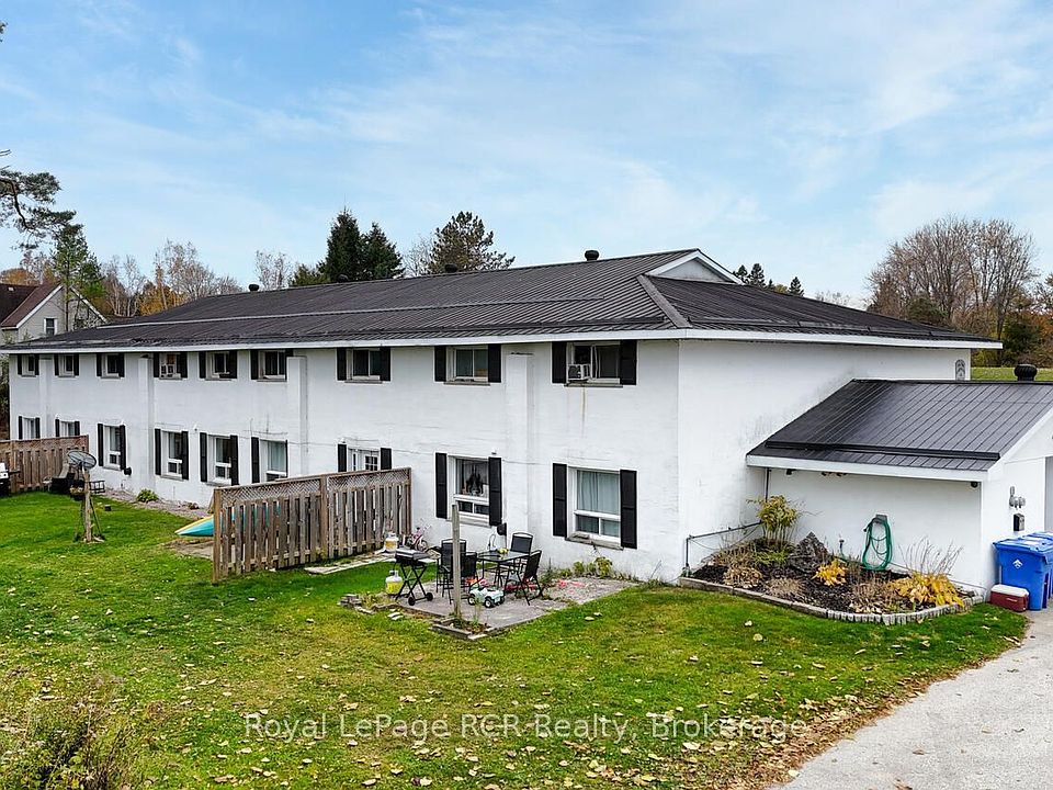 Fabulous purpose built apartment building in the lovely village of Shallow Lake. Located in a quiet residential area, this rental complex features 8 - 2bed 1bth apartments and 2- 1bd 1bth apartments. Each unit is 2storeys with plenty of living space and a partially fenced patio. Well maintained, the property is fully leased. Leases include utilities. Heating is with gas wall units on the main level and electric baseboard on the second floor. Property is on municipal water and has a septic system updated in 2019. Coin op laundry in the building. Property features plenty of parking space, metal roof, LED lighting, updated flooring, updated septic. Good income with long term tenants.