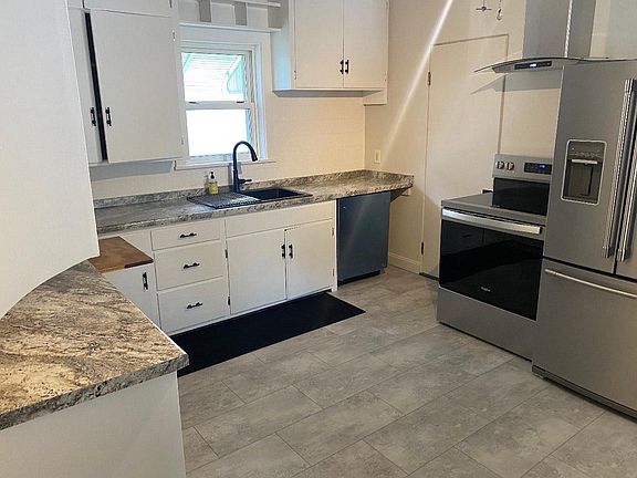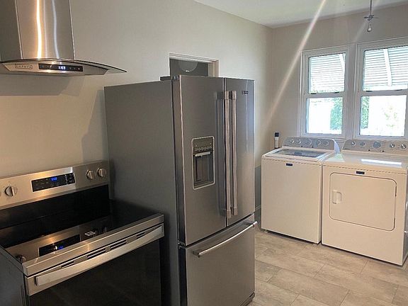 2-3 bedroom home, completely refurbished. featuring 3 rooms of maple hardwood floors that been refinished, all new appliances including a exhaust fan in kitchen and bathroom, new floor and countertops in kitchen, newer vinyl windows, porch in the front, fenced in backyard leading to the garage, new 12x7 garage door with new opener with also new metal roof. Seller is related to listing broker.