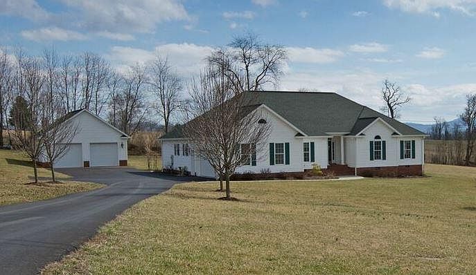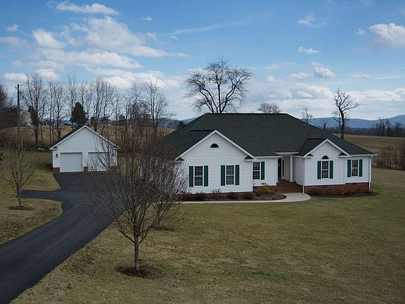 Southern Charm. Classy, comfortable, quality built 4 BR, 3 bath one level home. Spacious rooms with an open floor plan, vaulted and tray ceilings, inside columns, fireplace, built-ins, hardwood floors, ceramic tile. Master bedroom and a submaster bedroom provide privacy for each. Cheerful kitchen is 24'X 13' with dry bar, center island, 2 large pantries, lighted pot rack, and special kitchen features. Attached 2 car garage with an additional detached oversized 2 car garage and workshop. Paved driveway.Property includes 3.83 acres with city water. Expansive views.Enjoy pasture views from the outdoor covered patio. Max Meadows is located minutes from downtown Lewisburg, yet in a country setting. Located in one of Greenbrier County's premier subdivisions, Southern Charm provides a quiet setting with acreage, and the class and convenience typically found in an in town subdivision. Southern Charm, built in 2009, by the current owner, the home is immaculate and well maintained. Attention to detail is obvious; thus the following itemizes special details throughout the property. General Information 1. City water, septic 2. Privacy fence 3. Paved driveway, sidewalks 4. Down spouts directed buried at house with drainage directed down the slope 5. Prime Security System. (Approximately $320 per year) 6. Heating system includes electric heat pump with Propane backup/ Central Air conditioning 7. Pigtail installed for generator hook up 8. Large doorways that accommodate wheelchairs 9. 80 gallon hot water heater 10. Stairway to large attic area 11. Anderson windows 12. Bali Wooden Blinds 13. Kenmore Elite appliances 14. Upgraded toilets 15. Covered Front Porch 16. Lovely landscape including blueberry bushes 17. Hardwood and ceramic tile floors throughout 18. Covered 430 sq ft Back Patio Foyer/Living Room 1. Foyer Vaulted Ceiling 2. Column Entry 3. Living Room Tray Ceiling 4. Propane Fireplace 5. Built in bookshelves Dining Room 1. Open floor plan yet positioned for ease to kitchen and living room 2. 6" crown molding, chair rail 3. Large windows with lovely view Kitchen 1. Hardwood floor 2. Custom Built self closing cabinets with under cabinet lighting 3. Built in Desk and Cabinet Space 4. 2 Large Pantries 5. Dry bar area 6. Lighted pot rack over center island 7. Excellent lighting; recessed, fixtures, and natural light from windows 8. Kohler double sink 9 .Eat in area for a table plus large counter with bar stools 10. Backsplash is subway tile 11. Built in microwave Master Bedroom 1. Large Walk in Closet 2. Floor plan provides nice privacy 3. Hardwood floor Master Bath 1. Double sinks 2. Jetted tub 3. Large walk in shower 4. Toilet closet 5. Chankelier over tub 6. Ceramic tile floor 2nd and 3rd bedrooms are spacious with large closets and hardwood floors. Main Bath 1. Full bath 2. Large walk in shower with bench 3. Ceramic tile 4th Bedroom, considered a SubMaster Bedroom 1. Floor plan provides for privacy 2. Full bath with walk in shower 3. Hardwood flooring Utility Room/Mud Room 1. Built in utility sink 2. Ample washer / dryer area- washer and dryer do not convey Garages 1. Attached 2 car Garage with stair way to complete attic. 2. Detached 2 car garage (oversized) with workshop