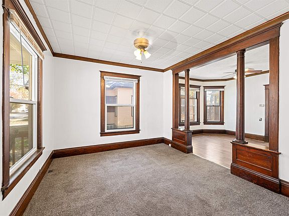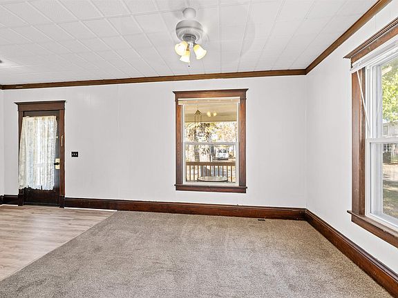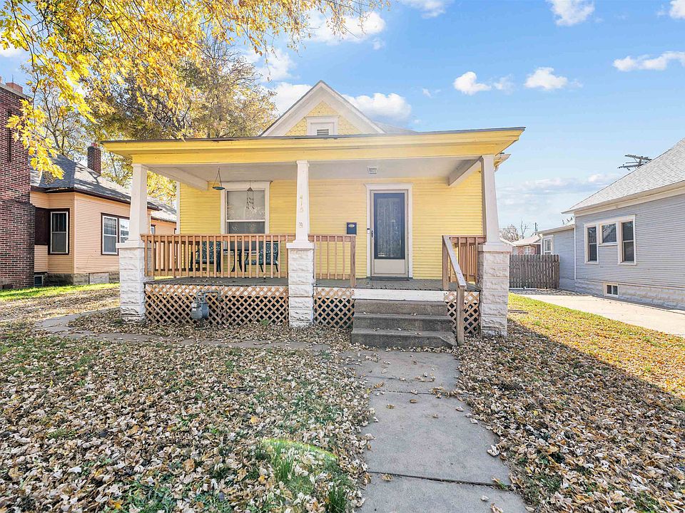 Welcome to this inviting cottage, featuring a welcoming covered front porch and thoughtful character throughout. Step inside to a bright entry with a built-in bench and enjoy the comfort of 9-foot ceilings, creating a spacious feel in the open living and formal dining rooms. The cozy kitchen offers an efficient working island, updated cabinets, and easy access to the handy pantry room with main-floor washer and dryer included. A screened-in side porch adds a perfect spot for morning coffee or evening relaxing. This home features 2 bedrooms and 1 bath, with newer flooring in the kitchen and one bedroom. The unfinished basement includes a new sump pump, providing peace of mind and extra storage. The floored attic offers exciting potential—finish it for additional living space if desired. A 1-car detached garage completes the package. Calling investors or first-time buyers—here’s a great opportunity to own an affordable home just minutes from the many retail and entertainment of downtown Salina.