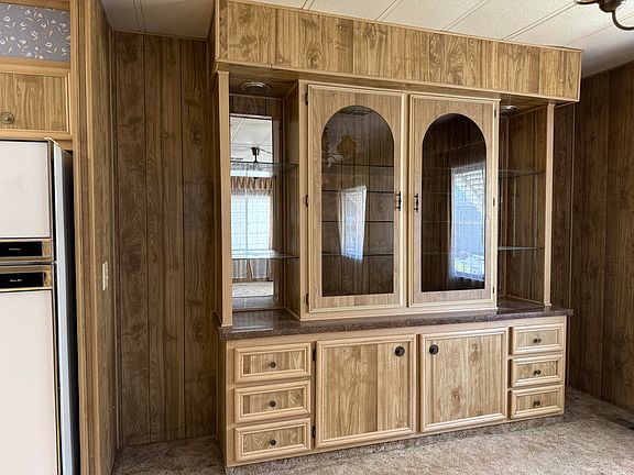 Double wide mobile home in a nice senior community. It offers a large living room open to a dining room with a built in hutch. The den has built in shelving and is open to the kitchen. The kitchen has a breakfast counter and newer oven, gas cook top, lots of cabinets and the refrigerator is included in the purchase price.
