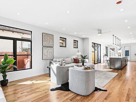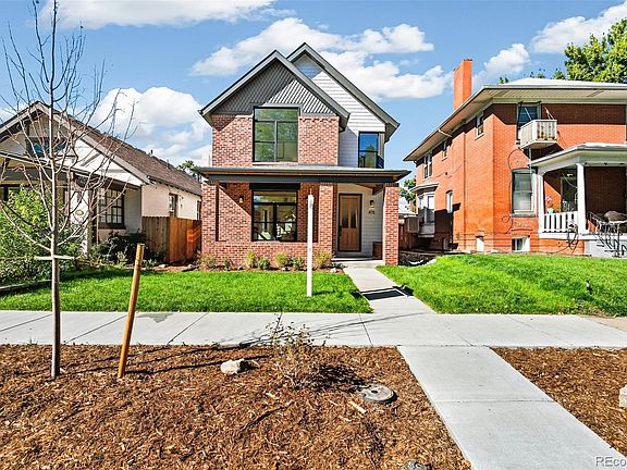 An incredible opportunity awaits you to own brand new construction in the heart of one of Denver's beloved historic neighborhoods. You'll find this home to be a wonderful compliment of past meeting the present, literally built from the dirt up with classic design and repurposed brick from the original 1921 bungalow, all in charming Alamo Placita. Start with the covered front porch that opens to a grand main level featuring soaring ceilings, gleaming oak wood flooring, oversized windows, and custom lighting. The kitchen offers matching stainless appliances, an abundance of cabinet and counter space, and a HUGE quartz island with custom pendant lighting. Sliding glass doors lead to a side-yard repurposed brick patio, perfect for grilling and outdoor dining. The dining area is sunlit from a large window and contemporary french doors, leading to the private, fenced backyard with a second repurposed brick patio, lush yard, and detached large 2-car garage (wired for EV charging). Adjacent to the dining room is the extra deep walk-in pantry (offering additional cabinet and counter space, and appliance storage, or a wine fridge), and a small mud room and door leading to the backyard for garage access. Past the 1/2 bath are stairs to the unfinished basement. Up the luxurious hardwood oak staircase to the generous landing above finds the primary bedroom and two additional guest bedrooms. The primary suite is sunlit with vaulted ceiling, carpeted floor, walk-in closet, and ensuite 3/4 bath with quartz dual sink counter. This level also finds an enclosed laundry room and full bath with white quartz dual sink counter. Additional upgrades include soft-close cabinetry, solar ready wiring, sump pump, radon mitigation system, basement egress window wells with french drains, rough-ins in basement for easy additions. You can enjoy the walkable neighborhood with easy proximity to area restaurants, quaint cafes, city parks, including access to downtown Denver and Cherry Creek amenities.