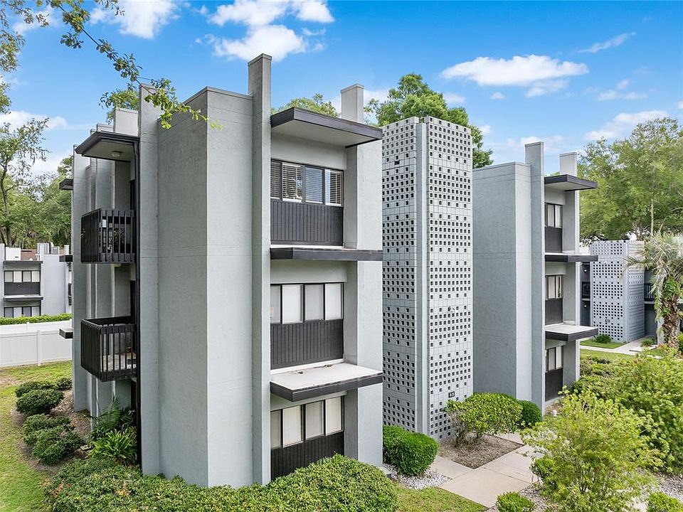 Beautiful 2 bedroom top floor unit in well-kept Concordia! Centrally located in NW Gainesville, you're minutes from Santa Fe College, the University of Florida, North Florida Regional, the Oaks mall, 43rd St business corridor, restaurants, shopping and I-75 exit! Open floor plan with spacious great room and dining by the kitchen! Balcony off the great room overlooking well-maintained grounds! Vinyl floors throughout except in wet areas and hallway, no carpets! Kitchen boasts of updated stainless steel appliances! This mid-century complex with outstanding curb appeal offers a community pool and HOA covers building insurance, exterior maintenance, grounds maintenance, pest control! Call now!