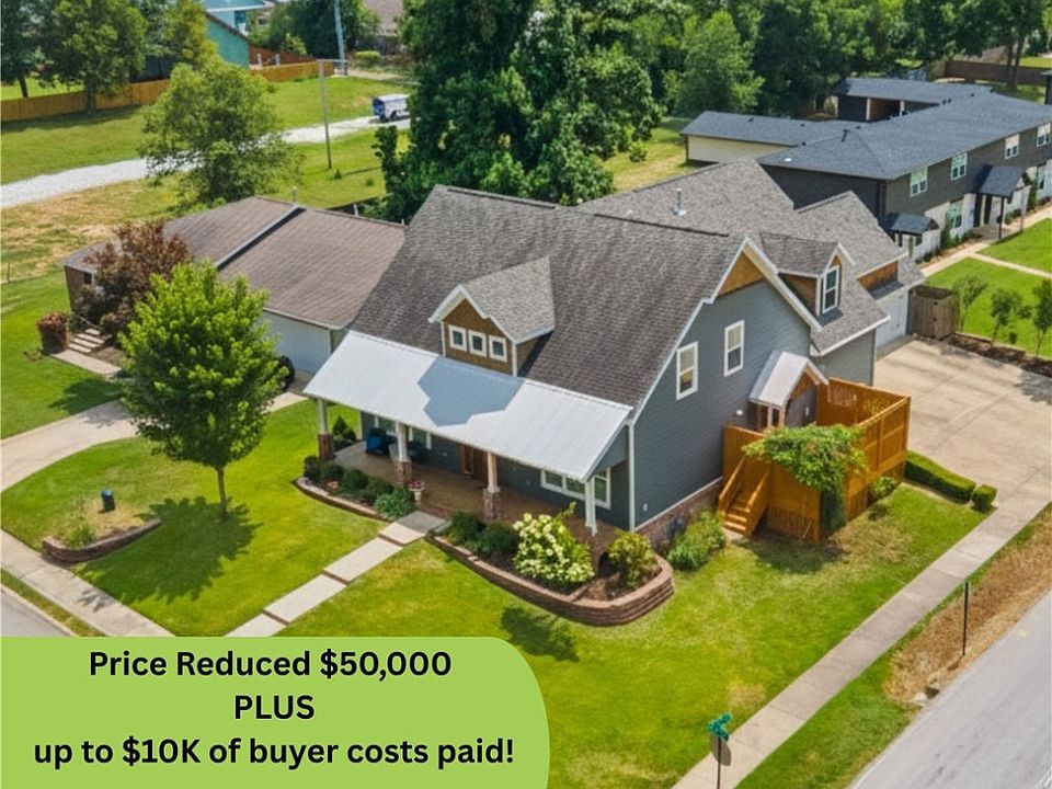 NEW PRICE PLUS seller offering up to $10,000 toward buyer closing and lending costs! Authentic Craftsman charm meets modern luxury in this stunning 4-bed, 4-bath home with bonus room in downtown Bentonville. Thoughtfully designed with rich wood flooring on the main level, warm beams, custom built-ins, and stained-glass detailing at the entry. The chef’s kitchen features granite countertops, farmhouse sink, dual ovens, and walk-in pantry. The primary suite offers a spa-like bath with soaking tub, walk-in shower, stained concrete floors, and private deck with hot tub. Upstairs includes 2 bedrooms, 2 full baths, and a giant bonus room—ideal as media, playroom, or 5th bedroom. The lower level offers a custom wine cellar, tasting room, and fitness room. Outdoor entertaining space completes this one-of-a-kind home near the Square, Crystal Bridges, Razorback Greenway, and Bentonville public schools. Don’t miss this rare opportunity for style, comfort, and convenience in the heart of downtown Bentonville!