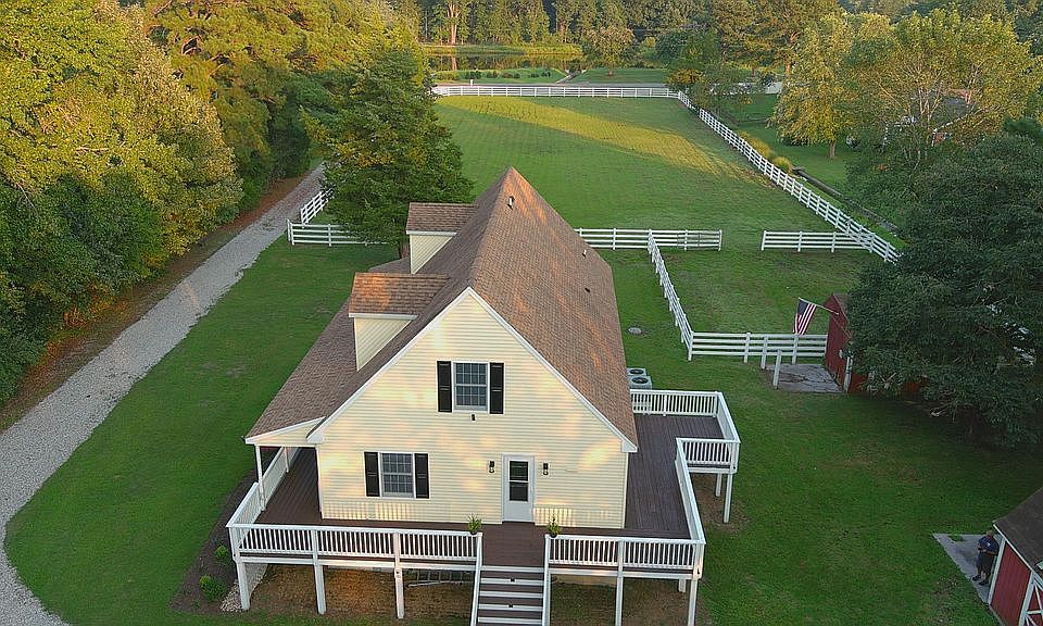 Beautiful Cape Cod 4 BR 3 Full Bath w/wrap around porch and deck on 3.6 acres with tons of privacy. Home built in 2005 is on a 6ft. poured wall foundation and has approx. 1200 ft. of stand up crawl space storage underneath and sits approx. 350 ft. off the main road. House has handicapped width doorways through out. Property has 3 Box Stalls w/paddocks and large pasture with 4 board vinyl fence through out. Large 2 Story Barn with plenty of Hay & Tack storage, 2 car garage, and separate workshop area. Property is on JCC water and sewer and has a large wooded area in the rear. Approx. 15 min. from Colonial Williamsburg, 18 min. from Busch Gardens, and 10 min. from the Jamestown Settlement Museum, Colonial Parkway, & Jamestown Ferry.
