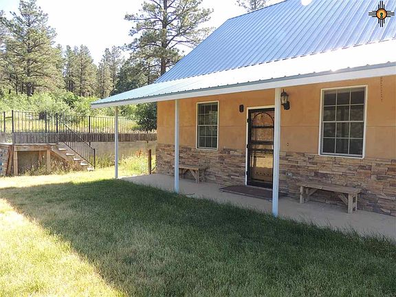 Exquisite mountain home with amazing views of Hermits Peak. Property extends to the river. Lots of extras. Stainless steel appliances including commercial stove and wine refrigerator. Granite counter tops throughout. Lovely bathrooms that include a "toddler" potty, double sinks and jetted tub. All bedrooms have ceiling fans and walk in closets. Loft area with safety rail. Framed attic with outdoor entrance. Refrigerated air conditioner (rare for the area). Wood burning furnace heats water for a boiler system in addition to a standard furnace for heating. Large insulated shop. Chicken coop and storage sheds.