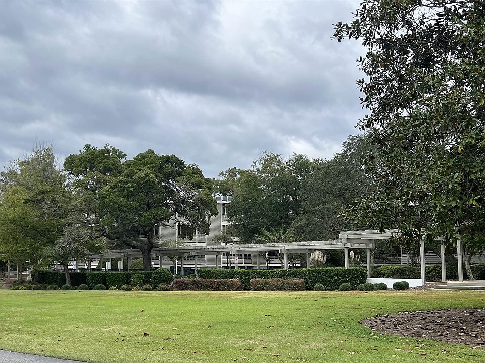 Location, Location, Location. This sought after two-bedroom, two balcony, two bath unit is located next to the end unit right at the entrance way to Lodge IV. It offers easy access getting to and from the beach or taking groceries and luggage from your car. It is an ideal location in Lodge IV. This is a quiet building with beautiful scenery and steps to a lovely pool surrounded by beautiful trees and shrubs or a short tram ride to the beachfront. Don't miss out on an opportunity to own a two-bedroom, two bath, first floor unit. ** unit to receive new carpeting within a few weeks. all figs and sq ft are approximate. Hvac installed 04/2011 Water htr 10/2019