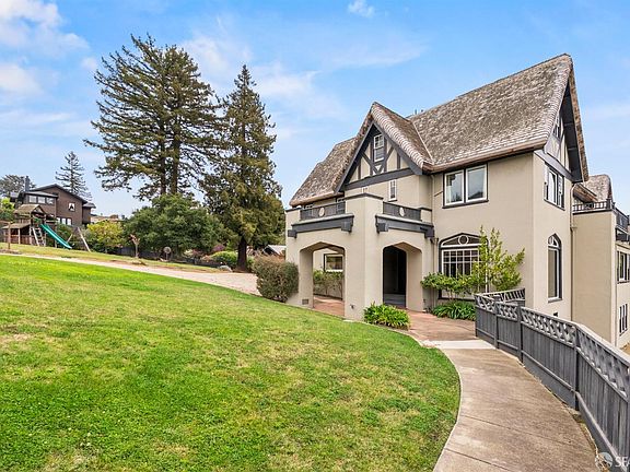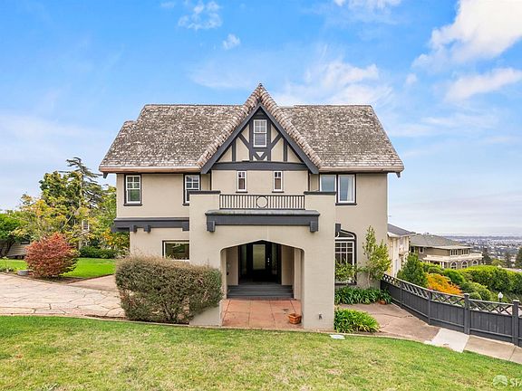 415 Pacific is an opportunity to own one of the premiere estates in Piedmont. The estate offers a rare opportunity to live in a home where character, location and spectacular views provide you with ideal vision for your family. Extraordinary combination of elegant craftsmanship, European influenced style, elegant and gracious spaces, endless possibilities and unobstructed views of the endless San Francisco Bay, the City and beyond. This 5000SF 4 level house and separate garage sits on 2 parcels totaling approx. 27,000SF spanning the entire distance between two streets (gated driveway entrance on Pacific, front stairway on Hagar Ave) in a quiet and coveted hilltop neighborhood. The outdoor amenities include mature landscaping, majestic trees gardens, grounds for entertainment and family fun. Nearly level in from the gated entrance on Pacific Ave driveway, you pass the 3-car detached garage on your way to the Porte Cochere main entrance. From Hagar Ave, walkup up the curved staircase into the private grounds of the Estate. An exquisite Tudor estate offering an Architecturally stunning, as you enter in the dramatic foyer, you are welcomed by generous formal rooms, a stunning hand-carved staircase, custom floor to ceiling wood paneling.