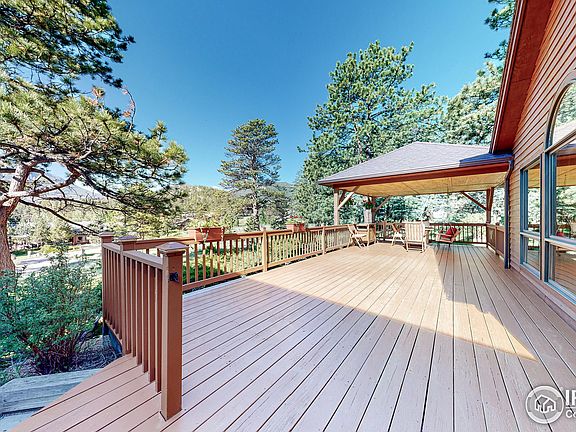Majestic Ponderosa Pines dot the natural landscape of this charming home located in a beautiful quiet neighborhood that preserves the small mountain town feeling! Easy access to Rocky Mountain National Park and hiking trails. Expansive Mountain views are an important feature throughout this well maintained property including the spacious partially covered deck. Large living area with Colorado Red Sandstone gas fireplace and vaulted ceilings open to a spacious kitchen with granite counter tops, Wolf Oven / Range, lots of cabinets and a pantry. The expansive mountain views are again highlighted in the 15 x 20 upper level living area that could serve as an office, a creative room, games area, etc. Private main bedroom suite. Heated 366 square feet building/workshop has unlimited potential uses! West side of property has mature tree line that offers protection from the occasional strong winds.