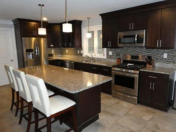- Kit Dscrp: Countertops - Stone/Granite/Solid, Deck - Exterior, Flooring - Stone/Ceramic Tile, Kitchen Island, Recessed Lighting