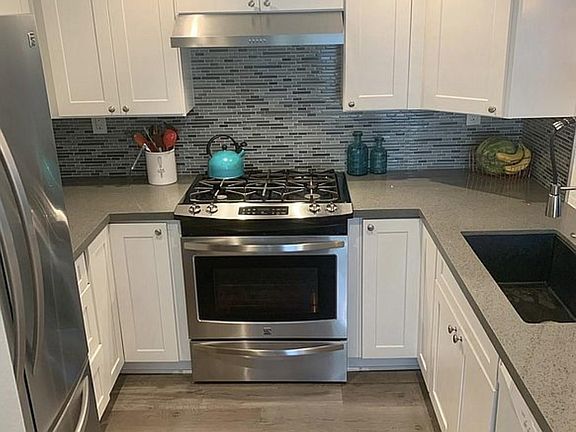 This corner, first floor condo was recently updated with new floors, a brand new kitchen with appliances, a new washer and dryer, and fresh paint! There is an attached garage with storage closets and room for one car. A parking space is reserved as well for this unit. Two small patios: one off the living room and one off the master bedroom. A fireplace in the living room creates a cozy space in the winter months. Unit comes unfurnished.