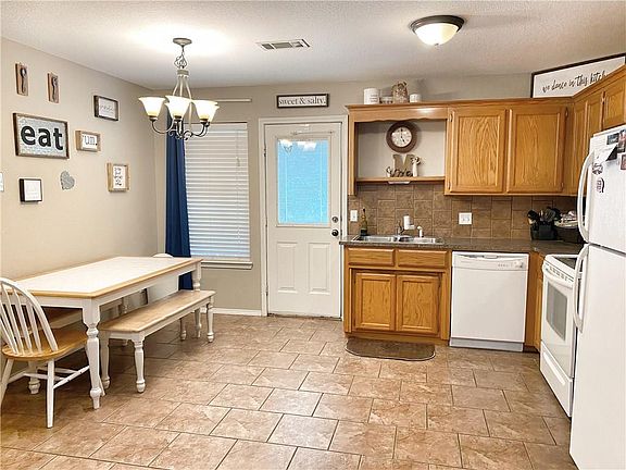 Cute 3 bed 2 bath home located in NO MONEY down area! Brand new laminate wood floor in hall & living room. Open kitchen- living concept. Fridge stays. Eat in dining. Split bedroom plan. Master has tray ceiling, Walk in closet. Big bathroom with deep linen cabinets. Insulated garage. Huge new covered back porch. New small storage building & new gate into back yard. Yard is level perfect for your kids, cookouts & animals. Home backs up to trees and pasture. All Electric!