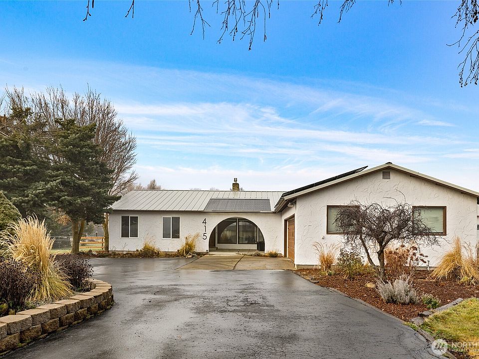 Located in the highly sought-after Grasslands neighborhood, this 1,592 sq ft rambler offers 3 bedrooms, 1.75 baths, and sits on a spacious 1.38-acre lot just minutes from town. The home features a vaulted living room with wood-covered ceiling and cozy fireplace, plus an updated kitchen with quartz countertops and an attached 2-car garage. A standout 28’x44’ shop with three roll-up doors and a loft adds incredible versatility. Outside, enjoy a fully fenced backyard, in-ground sprinklers throughout, fruit trees, two paved driveways, and a concrete covered patio. Newer solar panels add efficiency and long-term value!