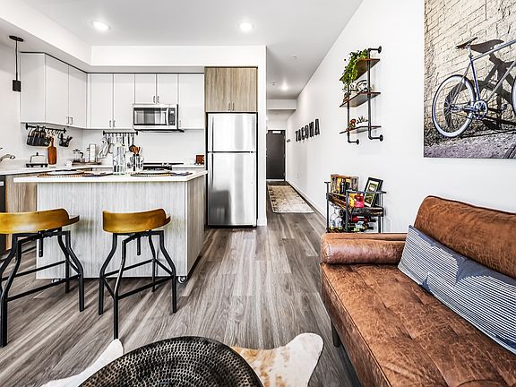 The spacious apartments at The Lex feature high end finishes, tall ceilings, large kitchens and bathrooms, private patios along with resident lounges, huge fitness center, and a rooftop pup park.