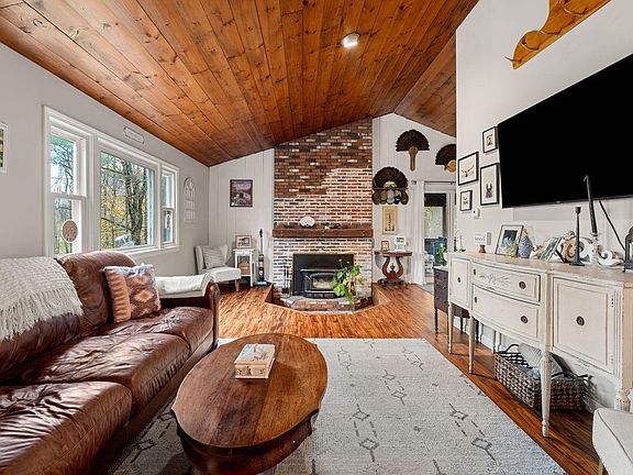 Discover a home full of warmth, charm, and personality—truly different from all the rest! This inviting tri level 3-bedroom, 2-full-bath property offers a perfect blend of rustic style and modern comfort. Step inside to find a cozy living area with a wood-burning fireplace and convenient first-floor laundry. On the next level you can find 3 bedrooms and a full bathroom. The finished walk-out basement provides extra living space, perfect for a family room, home office, or guest suite with the homes second full bath. Enjoy the peace and privacy of your 1-acre lot, surrounded by nature yet conveniently close to Route 101 and local hiking trails. Relax on the screened-in porch or take advantage of the detached 2-bay garage featuring a walk-up loft—ideal for storage, a workshop, or future studio space. With a durable metal roof, charming details throughout, and endless potential to make it your own, this home is ready for its next chapter. Come experience the perfect mix of privacy, character, and convenience—schedule your showing today!