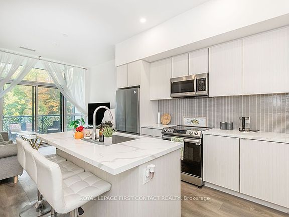 Experience resort-style living every day in this beautiful main floor condo nestled within the prestigious Friday Harbour Resort community. This bright and inviting one-bedroom, one-bathroom suite offers the perfect combination of comfort, privacy, and natural beauty, with a peaceful backdrop of mature trees just outside your door. Step inside to discover a thoughtfully designed open-concept layout featuring modern finishes, a well-appointed kitchen, and a cozy living area that seamlessly extends to your private terrace-an ideal spot to enjoy morning coffee or unwind at the end of the day. Friday Harbour's health-inspired lifestyle is truly limitless. Surrounded by nature, water, and scenic walking trails, this exceptional community offers meticulously maintained grounds and a wealth of world-class amenities. Enjoy access to multiple pools, a private beach, The Nest Golf Course, tennis and pickleball courts, a fully equipped fitness centre, and seasonal fitness classes. Residents can also take advantage of canoes, kayaks, paddle boards, basketball courts, beach volleyball, playgrounds, and even bike and jet ski rentals. The vibrant boardwalk, lined with restaurants and boutique shops, adds to the resort's charm and energy, creating a true year-round destination. Your Resort Association Membership includes Homeowner Access Cards, providing exclusive use of select amenities and activities throughout the property. Whether you're seeking a peaceful retreat, an active lifestyle, or a year-round getaway, this private, tree-backed condo offers it all-immersing you in the very best of the Friday Harbour experience.