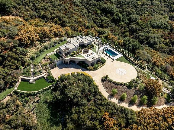 Property fell out of escrow, buyers were unable to perform. Designed in collaboration with renowned architects Roger M Yanagita Associates and Cory Buckner, Architect, this property is situated on approximately 37 acres of pristine landscape, it really transcends the ordinary, presenting itself as an exquisite residence. The long gated driveway, capable of accommodating over 30 cars, unveils a secluded haven. Boasting 360-degree views of the Santa Monica Mountains, the home offers a unique blend of natural beauty and architectural design. The interiors highlight a koi pond and curved walls of glass that create a harmonious connection with the surroundings. The gourmet kitchen is a chef's dream, equipped with top-of-the-line appliances, two prep stations, and a spacious island. This estate is perfect for enjoying the tranquility of the area and embracing a serene lifestyle. The house itself is a testament to durability and innovation, constructed using poured-in-place concrete and featuring a state-of-the-art fire suppression system for added safety. 415 Stunt Road encapsulates peaceful living, combining thoughtful design with a stunning backdrop to create an exclusive retreat. The property has been granted ministry status, the tax exemption status is not yet in place, but can easily be added. Per the sellers, the helipad is operational. In addition, the estate's expansive acreage, dramatic architecture, and ample parking provide exceptional potential as an event space or income-producing venue, offering flexibility for a discerning buyer.