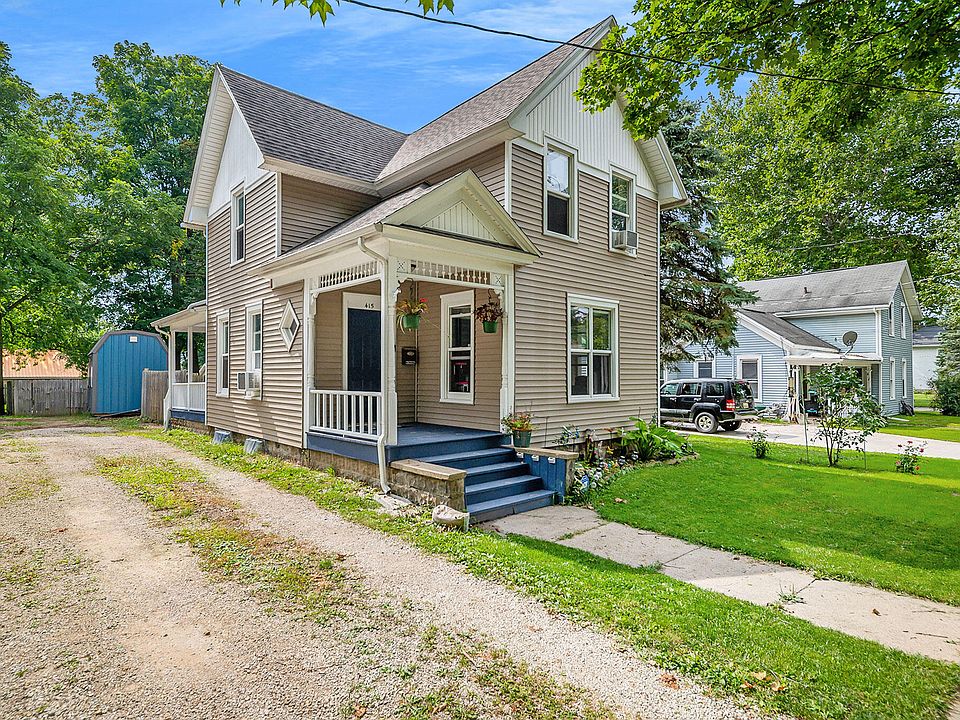 GREAT LOW PRICE! Truly must see. Don't pass up this Marshall beauty! Updated and never looked better! Be sure to check out this beautiful Home in Historic Marshall. Charming as you pull right up with great curb appeal, fresh paint and touches inside and out. The stunning original refinished and just resealed wood floors and trim throughout will not go unnoticed. What a beautiful transformation in the kitchen with new cabinets, countertops, complimentary tile backsplash, dark stainless appliances, and huge center island while keeping the charm of some original built-ins. This home features 3 bedrooms, 2 updated bathrooms including a brand new full bath on the main floor off of the cozy office/den. There are two living rooms (one can be easily closed off for a 4th bedroom if desired). The spacious mud/laundry room has been completely redone, is heated and wrapped with insulation and the sellers are working on just the finishes. Let's not forget about the brand new beautiful shed surrounding the privacy fenced backyard, deck, side by side driveway, and front and side porches. Newer vinyl siding, roof, replacement windows, furnace, water heater, exterior doors, plumbing, etc. make this the complete package. Call Noelle Pelton 269-579-2319 for a private tour and be the lucky new owners of this well-kept home!