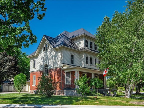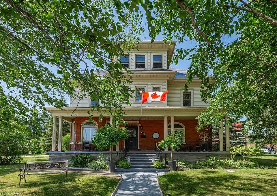 Step into timeless elegance with this beautifully preserved century home, offering over 3,500 sq ft of finished living space and brimming with charm and character. Located in the vibrant heart of Listowel on a spacious corner lot, this 5-bedroom, 2-bathroom home blends historic detail with thoughtful updates, making it ideal for families, or those looking to run a home-based business - there's a dedicated space conveniently located on the main floor perfect for an office. Rich in historic detail, the home features stunning stained glass throughout, soaring ceilings, and generous room sizes that reflect its heritage. The kitchen has been tastefully updated with solid oak cabinets, new stainless steel appliances (2025), a pantry, and a striking hand-cut Turkish marble backsplash. The main bathroom was converted in 2024 from a laundry room into a stylish and functional 4-piece bath. Additional updates include new lighting throughout the home, some newer double-hung windows, fully parged interior walls, and sprayed urethane insulation for added comfort and efficiency. Enjoy your mornings on the large covered front porch and host summer evenings under the backyard gazebo. Located along the school walking route, snow removal on the sidewalks is conveniently handled by the town - just one of the many perks of this unique corner lot location. Full of warmth, space, and possibility, this home is a rare gem waiting to welcome its next chapter. This is your chance to own a piece of Listowels history. Don’t miss it!