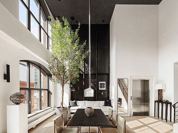 Introducing this gut-renovated designer duplex with two terraces, a fireplace, and soaring 21-foot ceilings on a quiet cobblestone street in the heart of Tribeca.